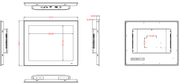 VGA,DC電源輸入,USB端口,(RS232接口僅電阻觸摸屏版本可選配) 5 x USB 2.0, 1 x USB 3.0 |