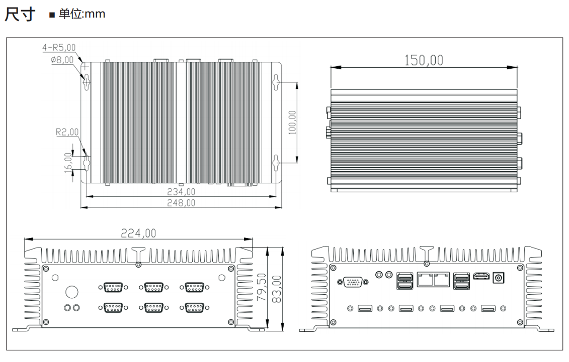 4 x USB2.0, 4 x USB3.0 4 x DB-9 RS-232 1 x 8bit GPIO (可選)