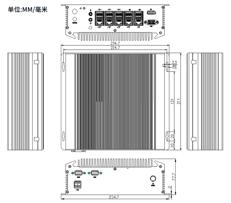 10/100/1000M、Intel i211GBE、5*RJ45 |
